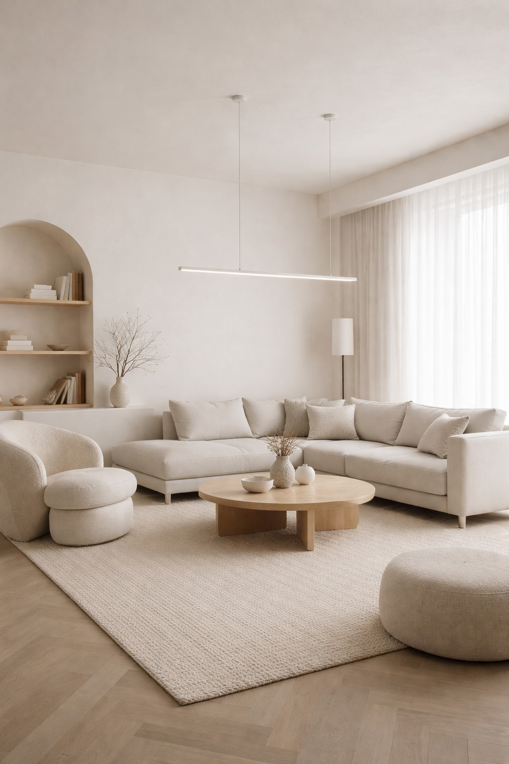 Часто используются белые декоративные покрытия и теплые серые оттенки стен.